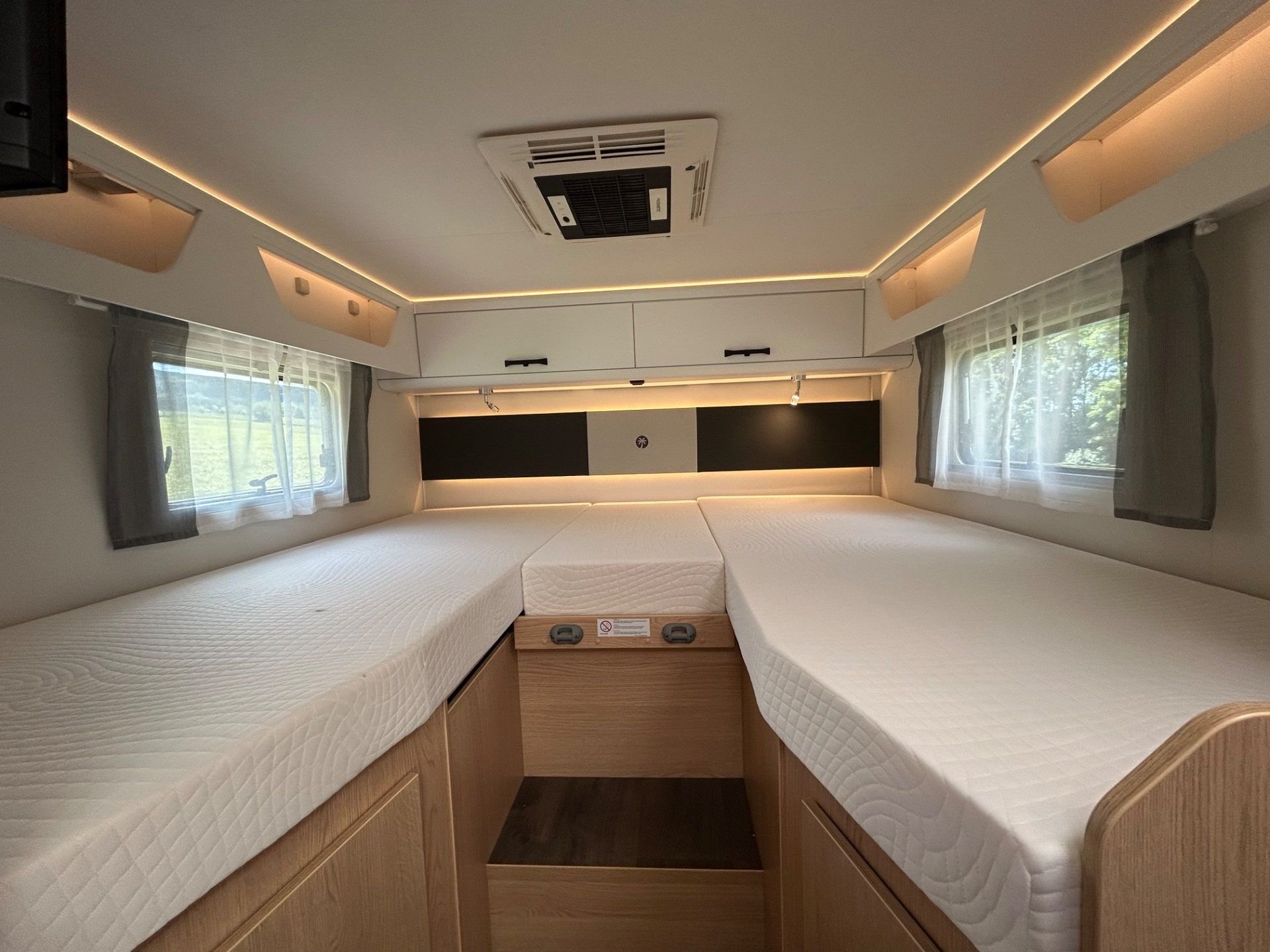 ● Heckbett mit teilbaren Längsbetten für 2 oder gesamt für 3 Personen